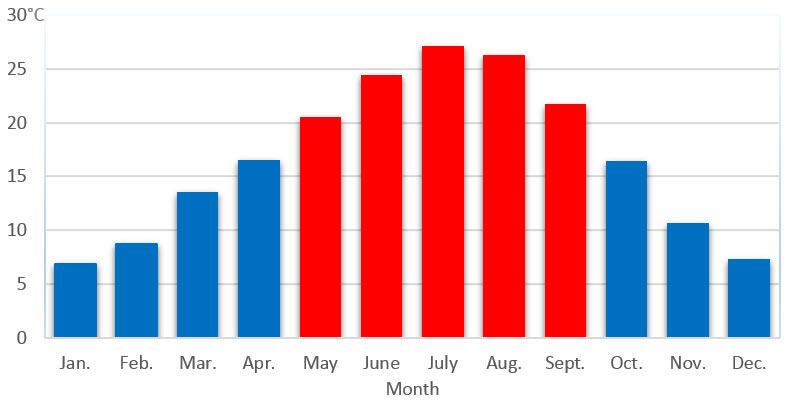 8.9 °C Mindesttemperatur
