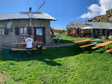 Holz- und Gasküche der Hütten-wärterin. Wohnküche mit 40-plätzigem Speisesaal, Beleuchtung durch Sonnenzellen, WC, Schlafraum mit 37 Plätzen und Terrasse. Schöne Hütte, mitten in einem Tannenwald gelegen.