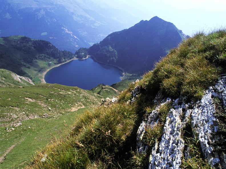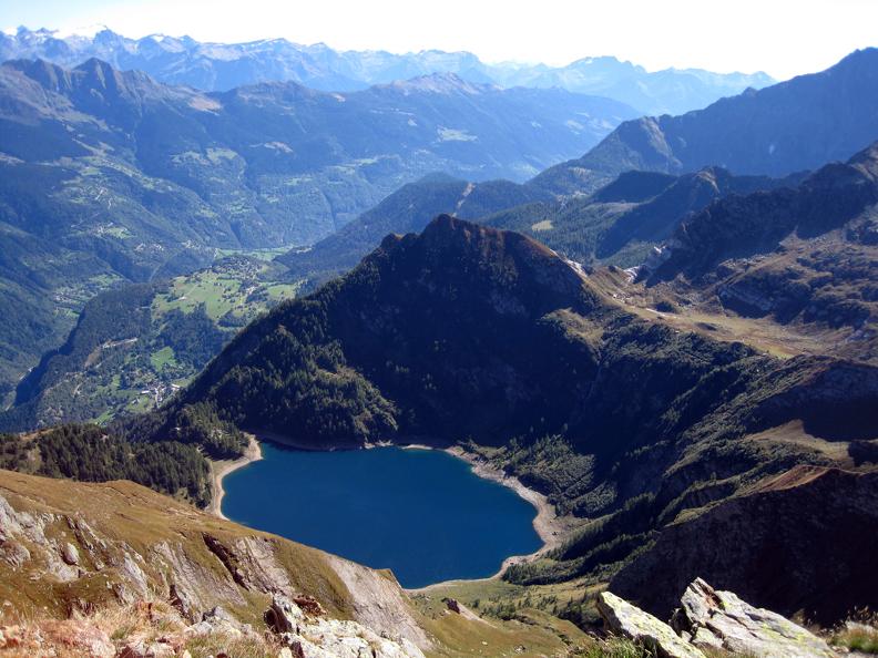 Der Höhenweg von der Alpe Pesciüm nach Rodi-Fiesso führt um den beeindruckenden Krater des Tremorgio-Sees herum.