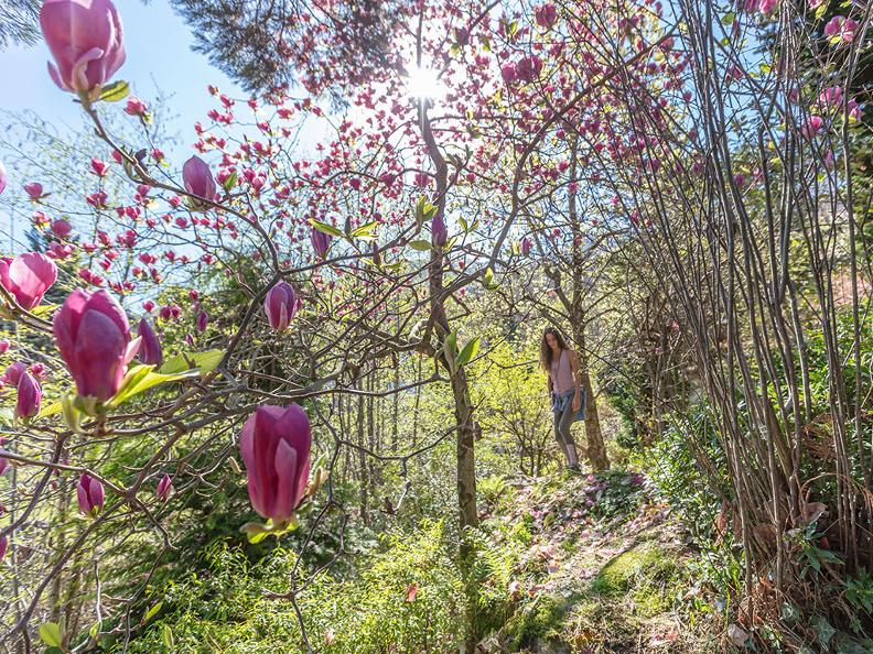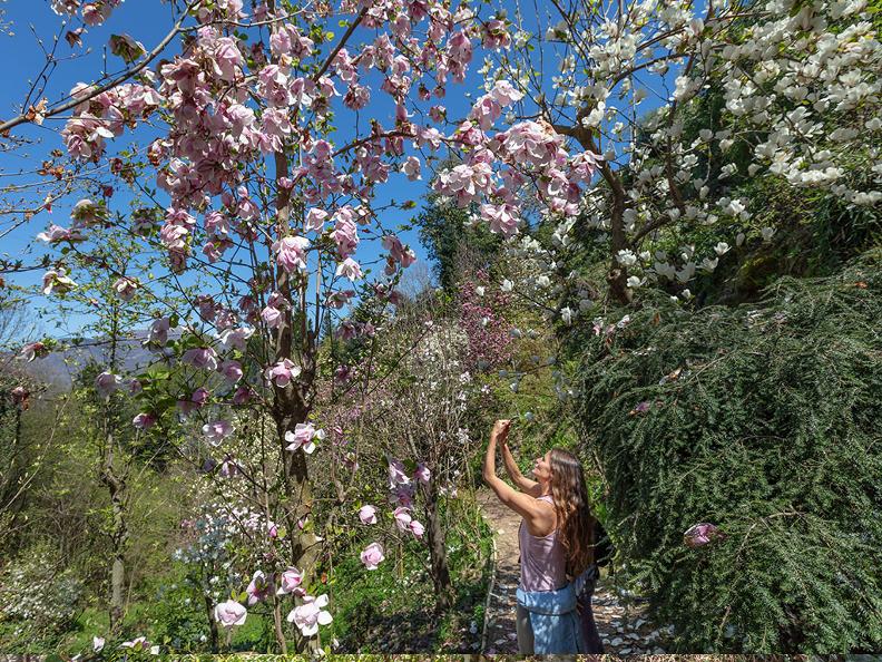 Auf der Gambarogno-Seite des Lago Maggiore, auf der Hügelterrasse zwischen Piazzogna und Vairano, liegt ein prachtvoller botanischer Garten. Hier hat Otto Eisenhut, ein Baumschulist, mit viel Liebe und Geschick auf über 20'000 Quadratmetern Tausende unendlich farbig blühender Pflanzen gezogen: an die 950 Arten und Sorten Kamelien, 450 verschiedene Magnolien, Azaleen, Pfingstrosen und Rhododendren; dazwischen wachsen Efeu, Kiefern, Wacholdergebüsch und andere zum Teil seltene europäische und exotische Nadelbäume.