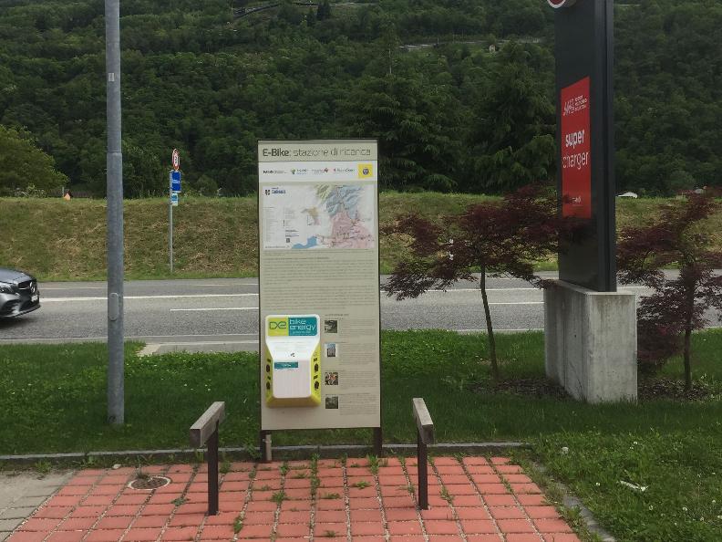 An jeder Ladesäule an den «E-Bike-Strecken» kann man bis zu vier E-Bikes gleichzeitig aufladen. Das Aufladen ist kostenlos und bei jedem Wetter möglich. Sie müssen keinen eigenen Transformator verwenden, an jeder Ladestation ist angegeben, wo Sie (ganz in der Nähe) die Stecker zum Anschluss jedes Batterietyps erhalten.
