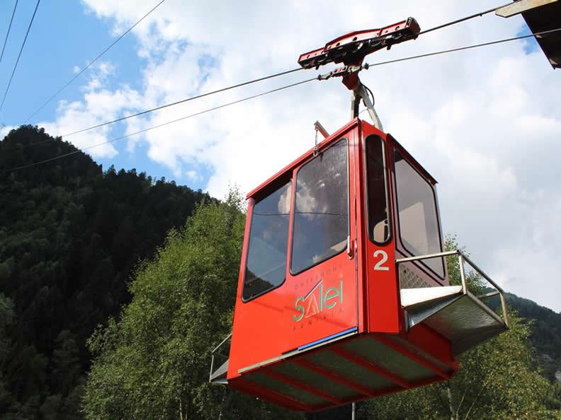 Von Vergeletto, im Gebiet Zott und nahe des Waldreservats der Arena, führt eine moderne Seilbahn mit Vierkabinen in nur 7 Minuten hinauf auf die Alpe Salei auf einer Höhe von 1783m.