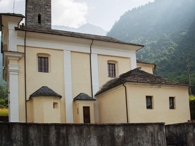 Die alte Kirche Santo Stefano (12. Jh.) wurde 1732 nach einem Brand wieder aufgebaut. Es bewahrt noch einige Teile der primitiven Konstruktion im Norden, wo sich neben dem Seiteneingang Fragmente von Fresken aus dem 15. Jahrhundert befinden (Kunst- und Altertümerinventar 1. "die drei oberen Täler", herausgegeben von Piero Bianconi, Grassi-Verlag Bellinzona 1948).