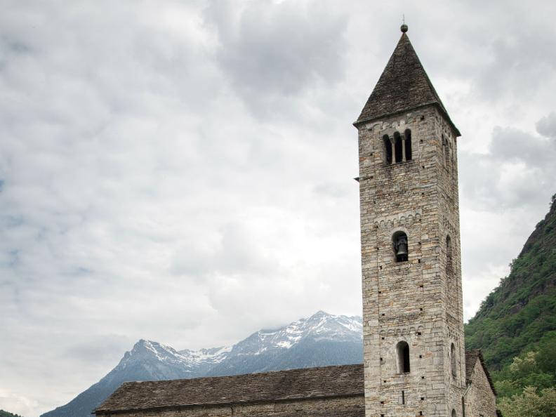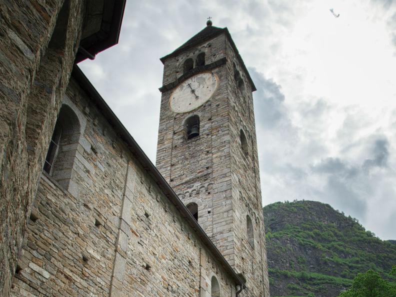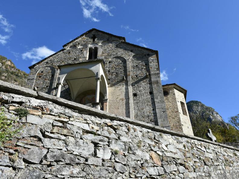 Die Kirche aus romanischer Zeit (12./13. Jahrhundert) befindet sich in dominierender Lage oberhalb von Biasca. Spätere Umbauten betrafen eine Erhöhung des Kirchenbaus und den Kirchturm.