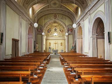 Das Chorgewölbe ist mit Stukkaturen aus der zweiten Hälfte des 17. Jahrhunderts geschmückt; sie wurden im 20. Jahrhundert aufgefrischt. Die beiden Seitenkapellen sind mit Stukkaturen des 17. Jahrhunderts versehen. Die eine ist der Muttergottes gewidmet (Fresken von Pompeo Maino aus dem Jahre 1930 und Marienstatue aus dem 17. Jahrhundert), die a