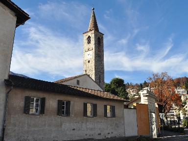 25 Stufen führen auf den Kirchplatz. Die Fassade ist dreifach unterteilt. Der Bogen aus dem 17. Jahrhundert im oberen Teil wird von zwei Nischen flankiert. Oberhalb der Kirchentüre ist ein leider unleserliches Fresko aus dem 18. Jahrhundert zu sehen; es wird Giuseppe Antonio Felice Orelli zugeschrieben.