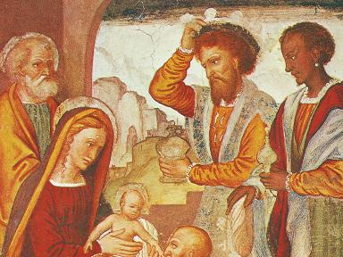 In den Nischen sind mehrfarbige, vergoldete Statuen der heiligen Petrus und Paulus aus dem 17. Jahrhundert zu sehen.