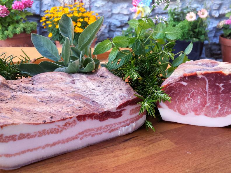 Unter diesen traditionellen Geschmacksrichtungen können Sie die formaggini, die Franco mit der Milch seiner Kühe herstellt, probieren. Der rohe Schinken, die Salami, die Mortadella und das Schmalz aus ihrer kleinen Schweinefarm. Nicht zu vergessen die typischen Gerichte, die Marina mit dem Fleisch des Bauernhofs zubereitet, wie Ossibuchi, Schmorbraten, Zicklein, Lamm, Eintopf und Cotecotto mit Bohnen, begleitet von der unumgänglichen Polenta, die mit Mehl aus der Steinmühle von Bruzella gekocht wird.