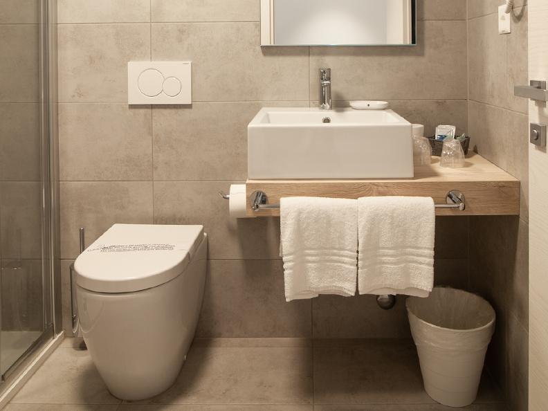 Badezimmer mit Dusche, Kosmetikprodukten, Minibar, kostenlosem WiFi, Flachbildfernseher, Direktwahltelefon, Safe
