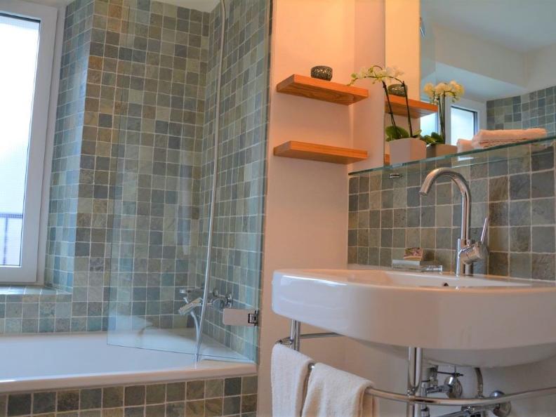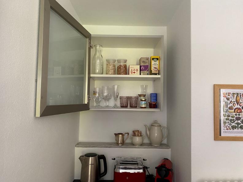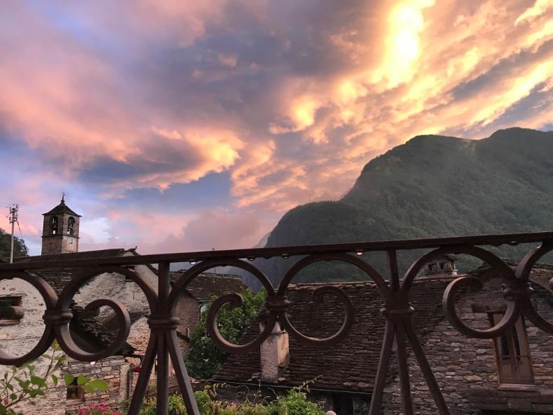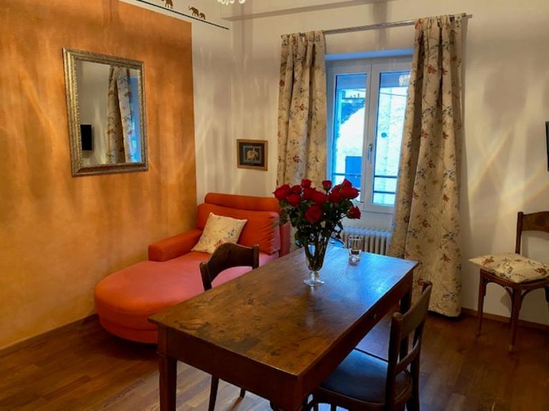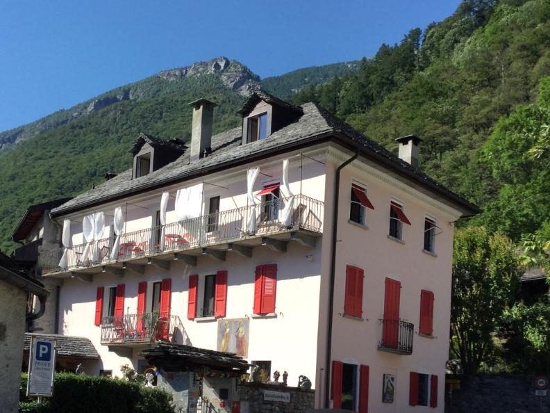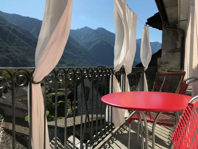 Das charmante Apartment "Raggio di Sole" befindet sich in einem historischen Tessinerhaus. Die Küche ist klein und zweckmässig jedoch mit schöner Aussicht auf die Steindächer und die Berge. Sie kann für 2 oder mit einem weiteren Zimmer für 4 Personen gebucht werden. Das Ess-Wohnzimmer ist geschmackvoll eingerichtet mit Nussbaumtisch und Wiener Thonet Stühlen, einem Sofa und Aussicht auf die Berge. Das Schlafzimmer,hell mit Fenstern zum Garten und Sicht ins Tal, eine private Terrasse mit Liegstühlen und Tisch. Die Räume haben geölten Kastanienholzboden. Sie schlafen in kuschelweicher, in der Schweiz hergestellter Satinbettwäsche. Im Bad finden Sie Handtücher aus Biobaumwolle und Naturkosmetikprodukte von Farfalla.