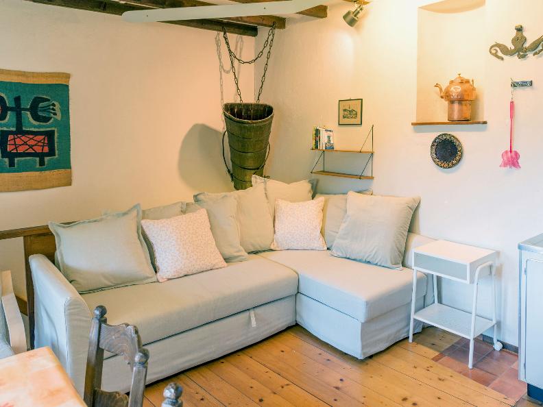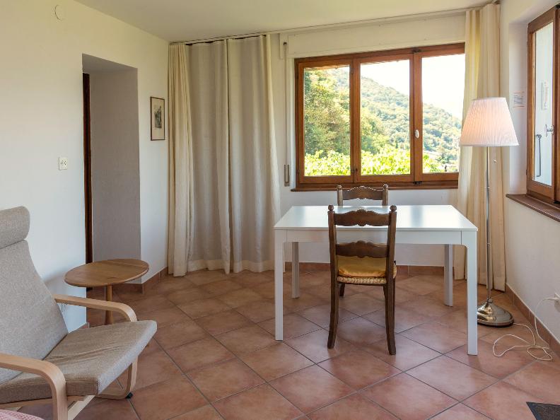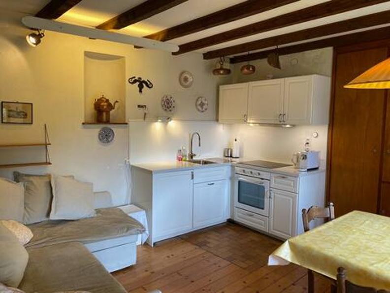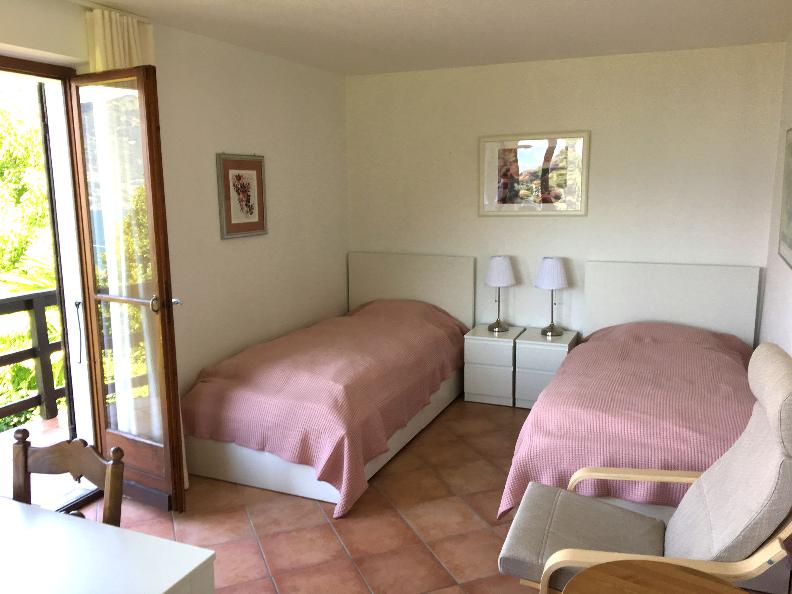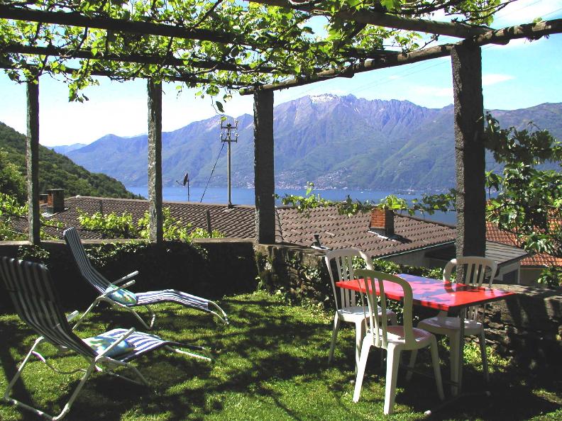 Schmuckes kleines Häuschen für max. 4 Personen ( 2 Einzelbetten + 2 Schlafsofa) mit tollem Seeblick direkt vom Schlafzimmer aus und eigenem Garten mit Liegewiese (Pergola).