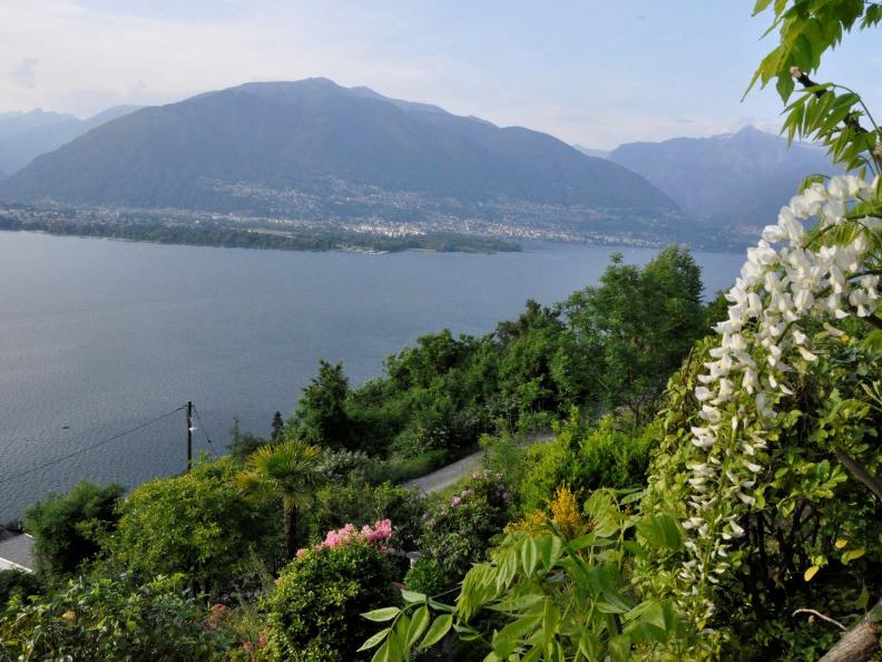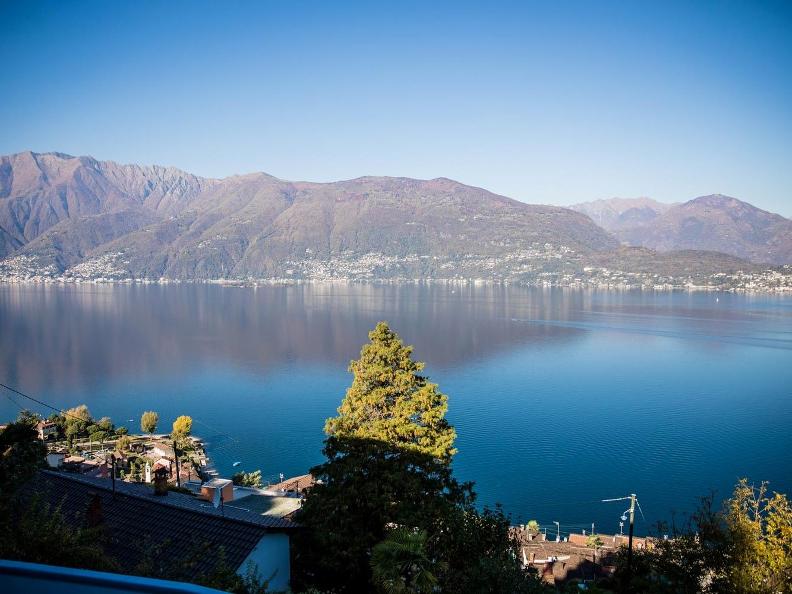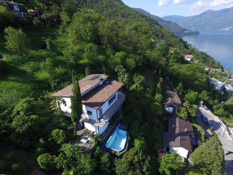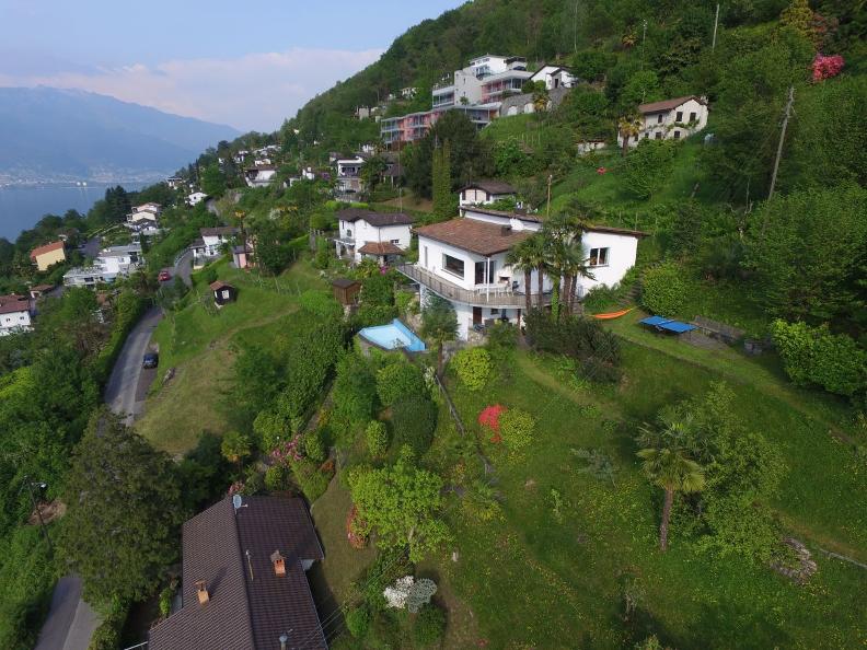 Ferienhaus mit zwei Geschossen, im 1. Geschoss eine 4½-Zimmer-Wohnung für 7 Personen, im Erdgeschoss ein Studio für 2 Personen. Das Haus liegt 150m über dem See am südöstlichen Ufer des Lago Maggiore in der Hügelzone des Gambarogno. Grandiose Panoramaaussicht auf Ascona, Locarno, den See und die Berge. Es ist umgeben von einem grossen Garten von 2000m2 mit einem Schwimmbassin von 24 m2.
