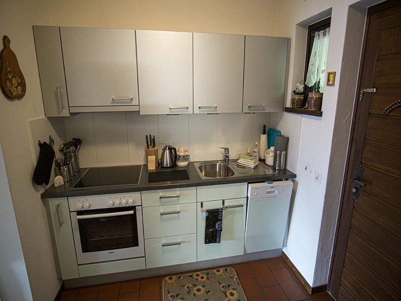 Die Wohnung selber umfasst 46 m2 und ist komplett eingerichtet. Die Betten sind angezogen und die Wäsche für Bad und Küche liegen auf.