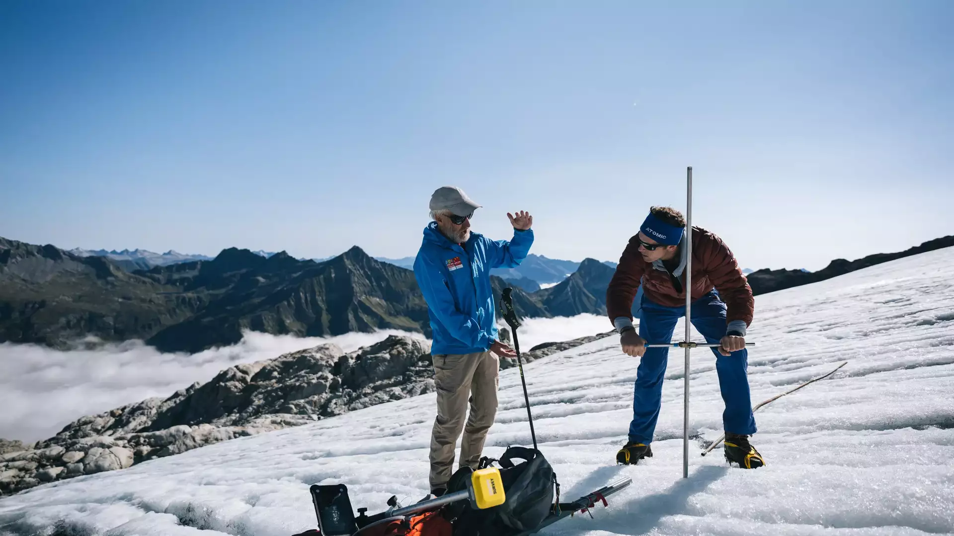 Giovanni Kappenberger e Mattia Soldati, Glaziologe und Mitarbeiter des kantonalen Forstamts.