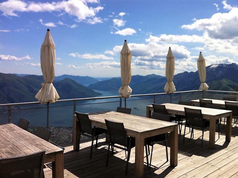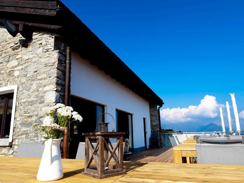 Der Speisesaal mit grossem Kamin bietet Platz für 20 Personen, während auf der herrlichen Terrasse mit atemberaubender Sicht auf den Lago Maggiore sogar 40 Sitzplätze zur Verfügung stehen. In der offenen Küche wird alles hausgemacht und die Speisen variieren je nach Saison.
