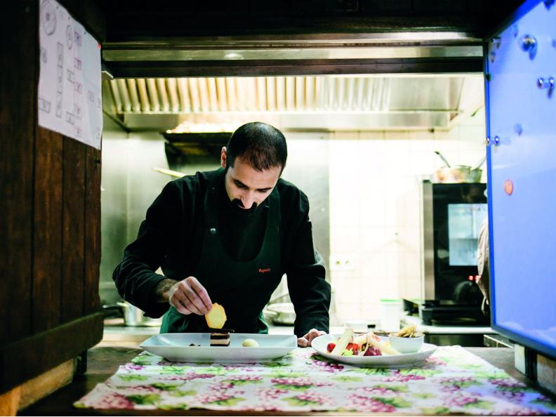 Das Grotto offeriert eine kreative Küche. Köstliche Gerichte aus saisonalen Produkten, welche die beiden Chefs Omar und Gabriele immer auf kunstvolle und originelle Art zusammenstellen.
