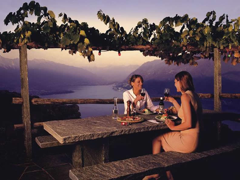 Diese kleine Paradiesecke spiegelt sich im Lago Maggiore und ist von schönen Bergen umrundet. Der Ausblick reicht bis zu den Schlössern von Bellinzona , begleitet von den Gipfeln Cardada, Pizzo Vogorgno, Comoghé, Monte Tamaro und den nahegelegenen italienischen Berggipfeln.