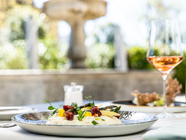 Trendige Atmosphäre mit offener Küche und einer grossen Terrasse umgeben von imposanten Palmen und üppiger mediterraner Vegetation. Eine lebhafte und ungezwungene Atmosphäre, durchdrungen vom Duft mediterraner Produkte. Eine leichte, regionale und vor allem nachhaltige Küche sind die Stärken, auf denen das gastronomische Konzept von La Fontana basiert, mit besonderem Augenmerk auf Neuheiten und Trends. Auch vegetarische Gerichte bekommen einen neuen und ungewöhnlichen Geschmack.