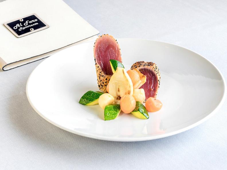 Loredana Pia-Bordogna und ihr Team verstehen es, ihre Gäste auf eine sinnliche Entdeckungsreise zu den Schätzen des Meeres zu begleiten. Das Restaurant Al Faro – ein Ort, wo der Duft und der Geschmack des Meeres sich in sinnlichen Kreationen eint!