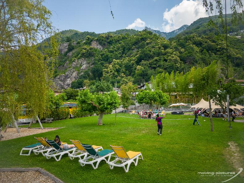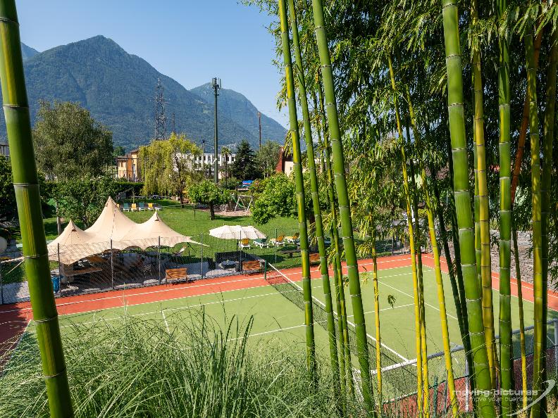 Das Bamboohuse liegt zwischen Bellinzona und Locarno (je ca. 8 km entfernt). Tenero und der Lago Maggiore ist 3 km entfernt. Der Veloweg Bellinzona - Locarno - Ascona führt in der Nähe vorbei. Velogaragen vorhanden. Ideal für Wanderungen ins Verzascatal, für Seerundfahrten (Brissago-Inseln, Luino), Städtebummel und Ausflüge. Grosszügige, 8500 m2 grosse Anlage mit viel Palmen, Bambus, etc. Bis zu 100 Betten in drei verschiedenen Gebäuden. Flexibel kombinierbar. Seit 50 Jahren beherbergen wir Gruppen und Vereine, sowie Familien aller Art in unserem neu umgebauten Zimmer und Wohnungen, meist mit Verpflegung. Hauseigenes Schwimmbad, Rotogolf, Ping-Pong, Tennis, Fussball, Volleyball, Kinderspielplatz, Tischfussball, grosse Spielwiese, Lotus Zelt mit Karaoke und TV, Billard, und ein Rustikales internationales Restaurant mit separatem Grottino und grosser Gartenterrasse mit Bambus-Hütten. SBB und Postautos im Halbstundentakt nach Locarno, Bellinzona und Lugano.