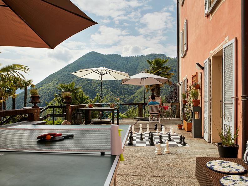 Für Gruppen von bis zu 35 Personen bietet dieses grosse Haus mit optionalen Seminarräumlichkeiten den idealen Standort nur 25 Minuten von Locarno entfernt. Auf der riesigen Granit-Terrasse können sich die Gäste im Schatten einer Palme von der tollen Aussicht inspirieren lassen. Fantastische Wander- und Bademöglichkeiten bieten sich an. Ein Lebensmittelladen nebenan ermöglicht es den Gästen, die Gemeinschaftsküche voll auszunutzen. Und die kostenlosen öffentlichen Verkehrsmittel im ganzen Tessin sind im Preis inbegriffen (vom Check-in bis zum Check-out um Mitternacht)!