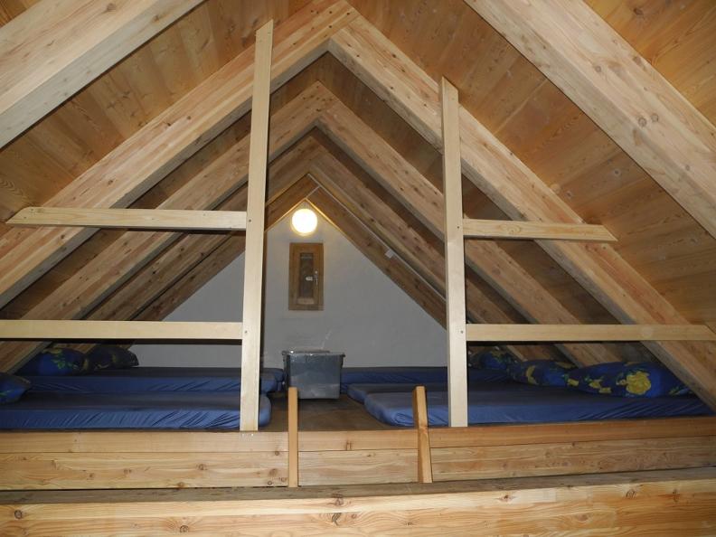It consists of a single room that serves as a kitchen / living room above which there is a loft with 6 beds, complete with mattresses, pillows and duvets. However, the use of a personal sleeping bag/sheet is required.