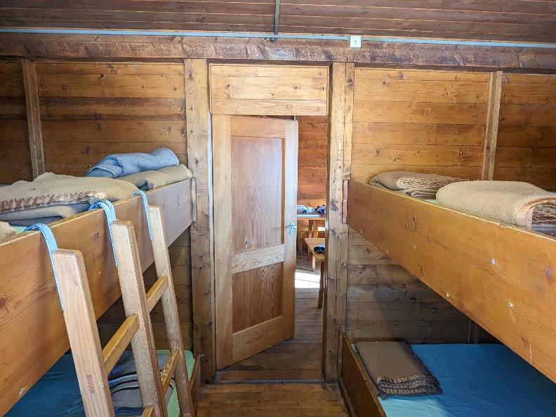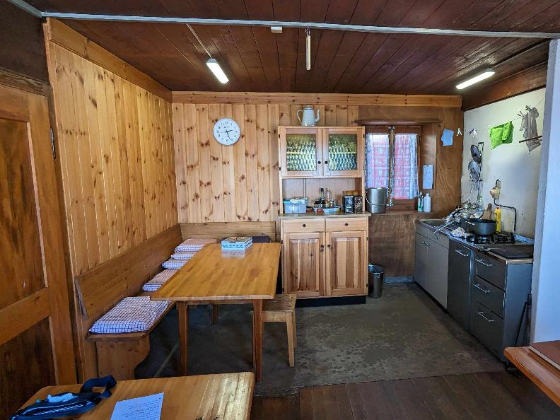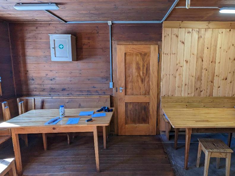 Masonry construction: Kitchen, dining room with wood burning stove, dorm for 12 people, lobby with utility room and service. Lighting with solar panel. Also suitable for ski touring.