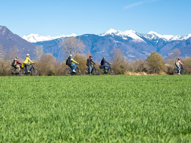 Are you ready to ride through the beautiful Maggia delta area and find out about what is grown here? After meeting in Locarno, where the guide will hand over the e-bikes and helmets, we will begin our tour of discovery of Locarno and the River Maggia. Our ride will take us to the Cantina alla Maggia winery for a wine tasting session and to learn about agriculture at the lowest point in Switzerland (193 m a.s.l.), as well as the northernmost rice field on the planet (or almost). In this special place, the farm’s 150 hectares of integrated and sustainably farmed land fit easily into one of the country’s most beautiful natural landscapes. What’s more, Cantina alla Maggia has been selected by Gault&Millau as one of Switzerland’s top 150 wine producers. We then make our way to the beautiful and exclusive town of Ascona, where we will enjoy a short walk and have time for a snack and a drink by the lake.