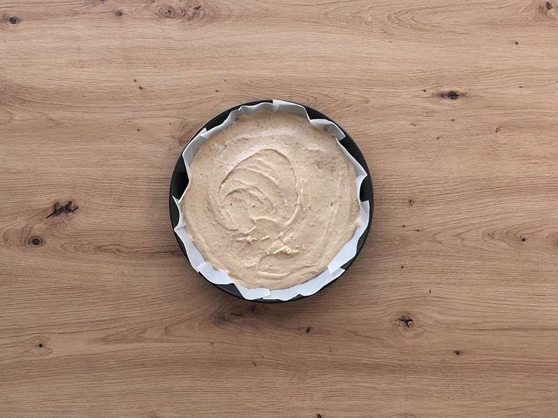 - Pour the mixture into a 24 cm cake pan;