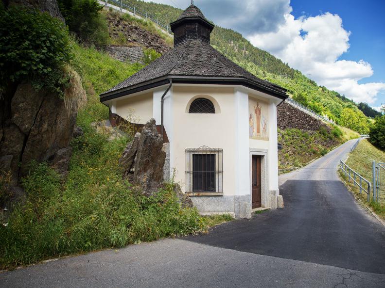 In 1940 it was restored and the painter Cassina painted two frescoes: the inner one represents the Madonna with the Child, the outer one who was to protect us during the war period, that is St. Nicolao della Flüe, the gunner soldier and the two young farmers. The shingle roof is from 1989. A mass is celebrated on the third Sunday of September on the occasion of the Federal Thanksgiving Day.