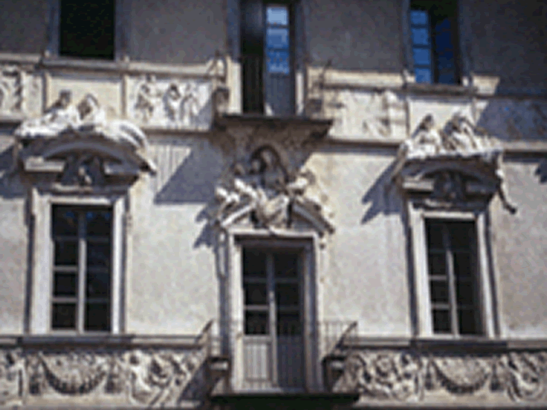 The façade of Casa Serodine is richly decorated with valuable stucco work by Giovanni Battista Serodine, son of Cristoforo, owner of the palace, and brother of the painter Giovanni.