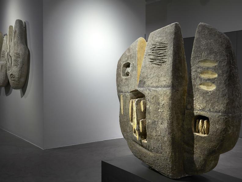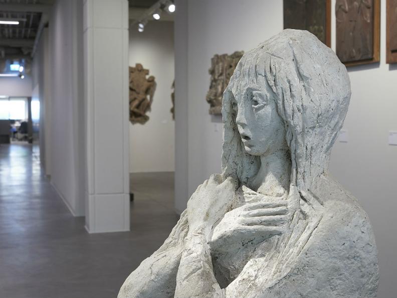 On the lower floor there are groupings of works; "islands" that encapsulate various aspects of his production, concentrating on portraits, on the development of "biomorphic bodies", and on his completions of large public and private commissions. The latter part of this tour of exhibits takes us on an excursion into the world of religious sculpture, with embossed copper and plaster reliefs, and to a space dedicated to the large interventions of 1966 and 1992 in the church of the Good Shepherd in Vienna, the most ambitious of all of his religious works.