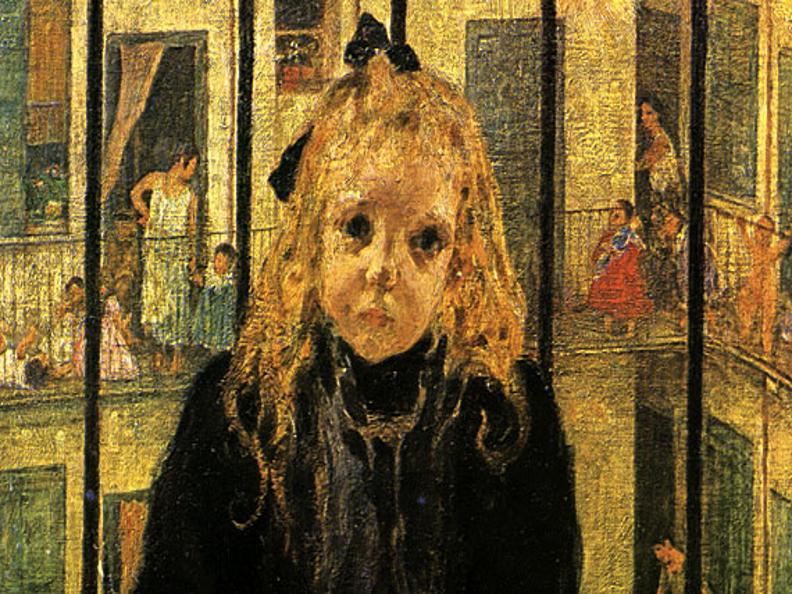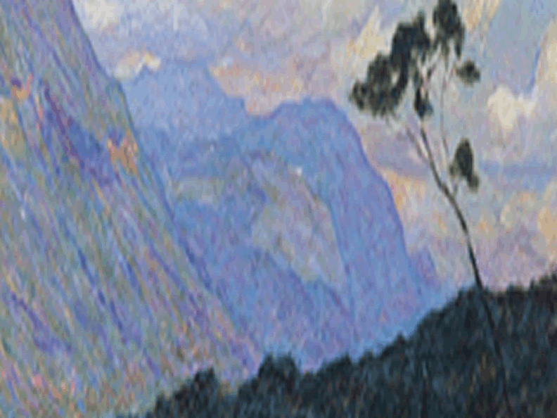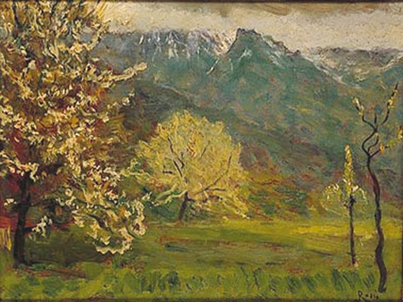 From the early 1890s to the early 1910s there was a move from realism to symbolism in Luigi Rossi’s work. The presence of the poet Lucini, whose words correspond to Rossi’s style elements, radiated from the heart of the poetic creation. The artist alternated between social-symbolist and art nouveau-symbolist works, his theories favouring humanitarian ideals or art with imaginative strength. Towards the mid 1890s he painted L’armée du travail and Rêves de Jeunesse (cat. no. 104), while around 1910 he produced two canvases with a different social and allegorical tone, set in an imaginary diptych contrasting the enclosed space of city tenement buildings (Alveare) with the open expanse of vast and chilly alpine scenery (Canto dell’aurora).