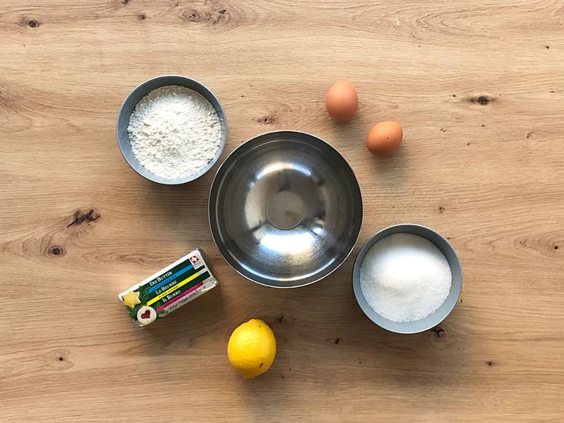 - Add the softened butter, lemon zest and salt and mix with the flour;