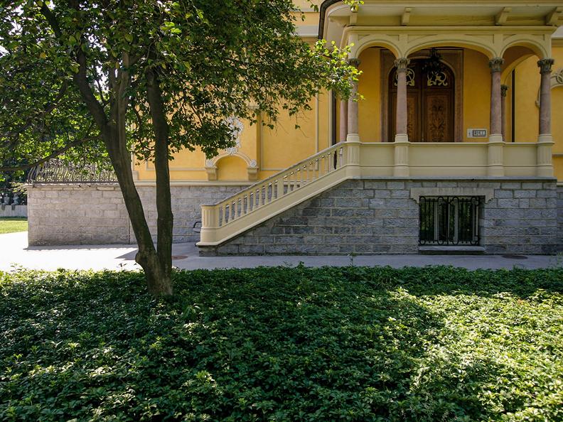The history of the park is closely linked to that of the villa. Before it became the property of the Saroli family, the villa was known to the Luganese as Villa Enderlin, named after the family that had it built in 1904, by architect Giuseppe Pagani. The building is an original creation in Gothic-Renaissance style. The interior features rich decorative elements in Art Nouveau and English 'arts & crafts' style, while the exterior features a corner tower with a roof of unusual shape for Lugano and a terrace with Art Nouveau-inspired wrought-iron railings. On the north side of the villa is a valuable greenhouse - Orangerie with large vaulted windows, open on the south façade, completely covered with fragrant evergreen jasmine. In terms of vegetation, the park is dotted with beautiful century-old trees such as the evergreen magnolia (Magnolia grandiflora), silver cedar (Cedrus atlantica glauca), Gingko biloba, Liquidambar and other valuable conifers. A rare specimen of Californian laurel and a group of old varieties of camellias, rhododendrons, azaleas and Cornus florida can also be admired.