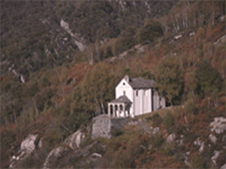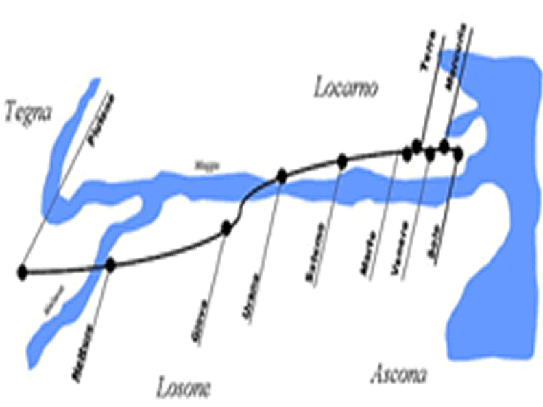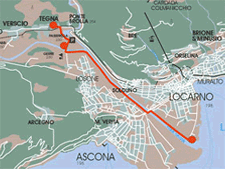 At the beginning of the walk, at the mouth of the river Maggia, one can get an idea of the hole distance by looking up towards the valley direction "Terre di Pedemonte". On the right hand on the hill above Tegna you will see a light building which is the small church St. Anna.