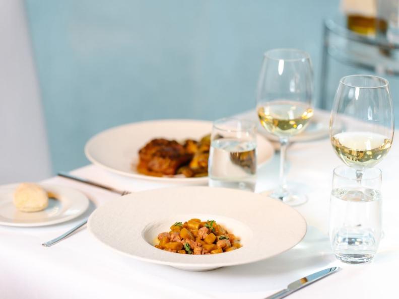 - Once it reaches an amber colour, deglaze with a ladleful of water from the cooking water of the gnocchi.