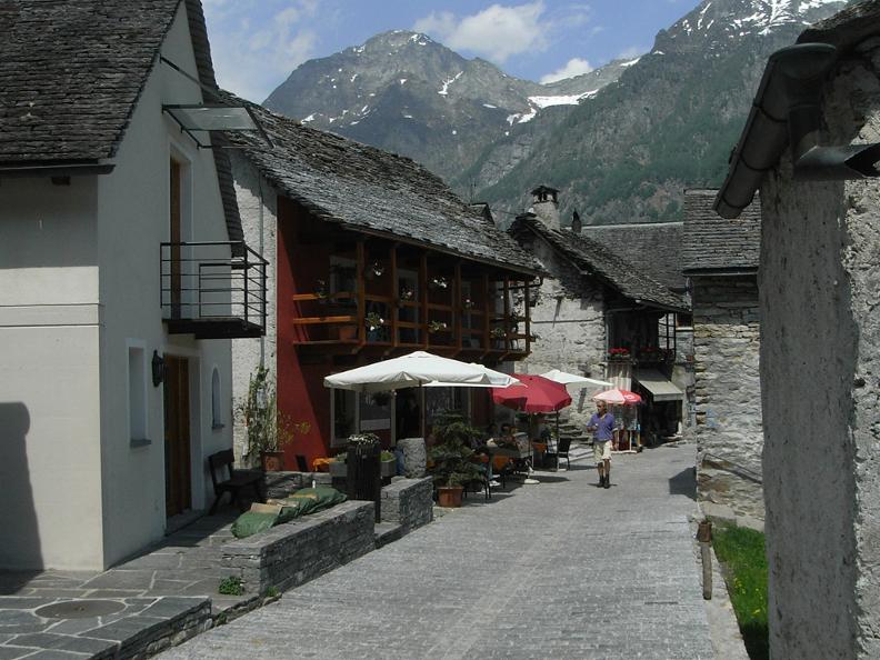 Market with typical product at the main place of Sonogno (Valle Verzasca).
