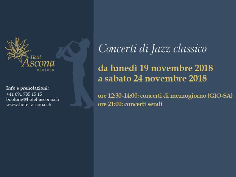 An intense week of classical jazz will take place in November at Hotel Ascona – also organizer of the event.