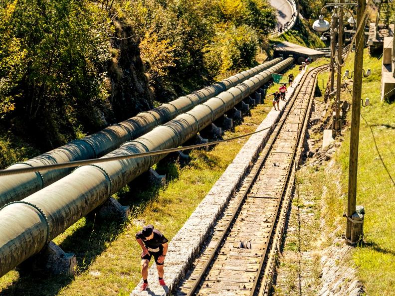 1.3 km in length with 790m of elevation gain, covering 4,261 steps. The 4,261 steps follow the tracks of the funicular and the water pipes leading to a hydroelectric power plant. The average gradient is 71%, with a maximum gradient of 89%. The course is marked and monitored by mountain rescue personnel.