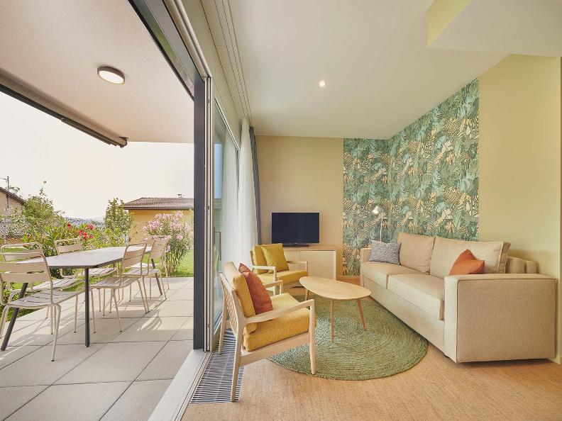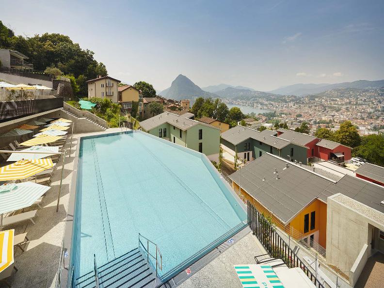 Clean, deep blue, crystal-clear lakes, green wooded hills and a mild climate ... in Lugano-Albonago, on the sunny slope half way up the Monte Brè, you can gaze out over the town and Lake Lugano towards the Malcantone region. Hiking, biking with the possibility of the most beautiful excursions just a stone’s throw away? Or long, peaceful days at the panoramic pool? And in the evening, a glass of Merlot with an exquisite meal under the pergola? That’s what holidays in Ticino are all about! For you, we have totally re-built this Reka classic – spacious, drenched in natural light, and with a modern design. 49 flats with balconies or terrasses and 2 hotel rooms await you.