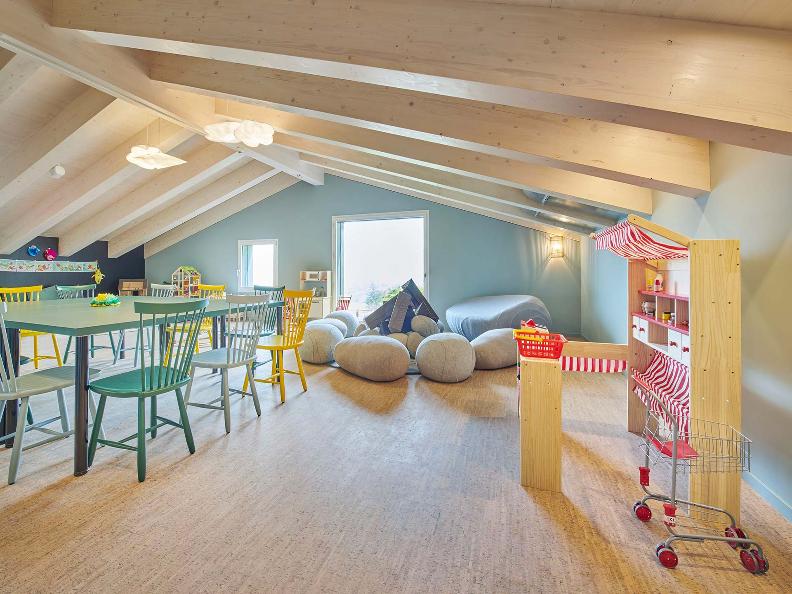7 residential buildings and a main building with reception, restaurant, Rekalino children’s paradise and children's playroom as well as a two-level covered car park. At this spacious facility you’ll find everything you need to complete your flat and contribute to successful holidays. For example, the self-service, grotto style «Osteria» restaurant for your breakfast and evening meal with indoor and outdoor seating under the pergola. Here you can choose pizza, pasta and all the wonderful Ticino cuisine’s specials. Or freshly-prepared takeaway offers, a cool drink, a gelato or a light snack from the kiosk selection. You can simply add your breakfast or half-board as extras together with your accommodation booking.