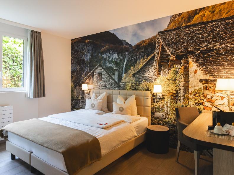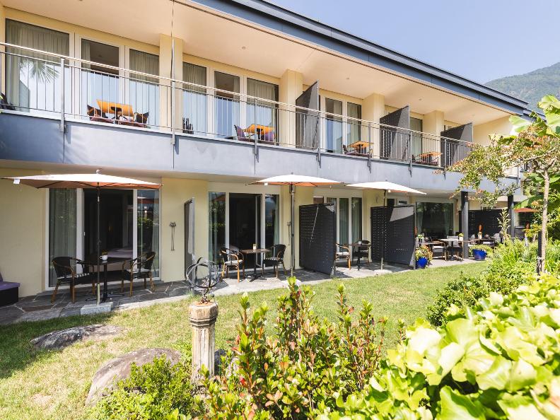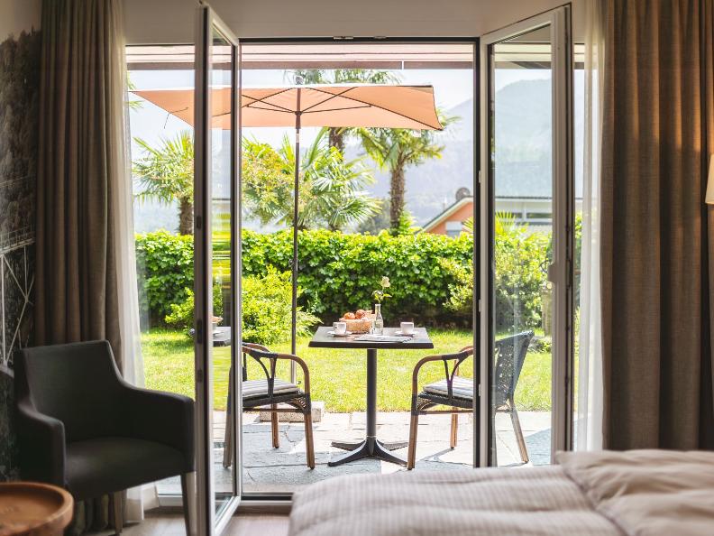 Over the years, the property has been lovingly renovated, maintaining a warm and personal style. The rooms reflect the local charm through elegant prints of iconic Ticino landscapes – from the enchanting Val Bavona to the charming Centovalli railway, while the premium rooms are adorned with delicate flowers typical of the region. Each room includes a terrace or a balcony overlooking the garden, except for the economy rooms, designed as a simpler and more budget-friendly option.