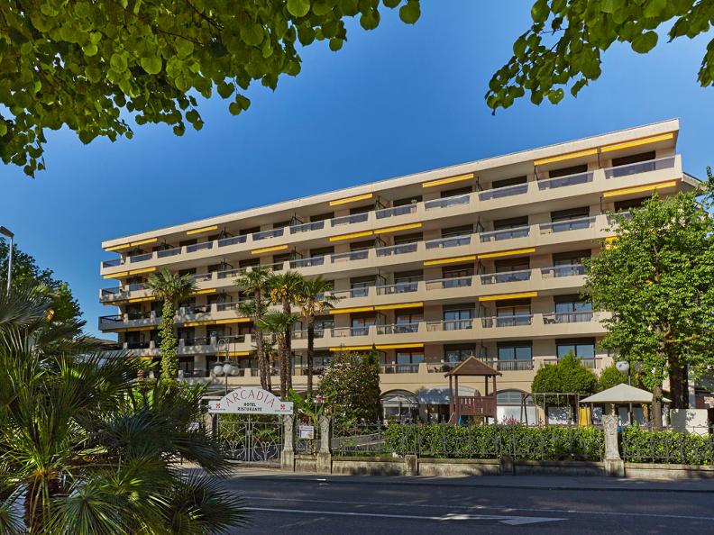 The H4 Hotel Arcadia Locarno is a family-friendly hotel with spacious rooms and a playroom for children. Many rooms offer lake views and feature a balcony. Free rental bicycles are available for exploring the beautiful Alpine region. Enjoy 4-star comfort and the mild climate of Locarno, just a short walk from the city center and right on the lakeside promenade of Lake Maggiore. At the "Ristorante La Tavernetta," you can look forward to creative dishes from Swiss-Mediterranean cuisine. From mid-May, you can also dine on the garden terrace with views of Lake Maggiore.