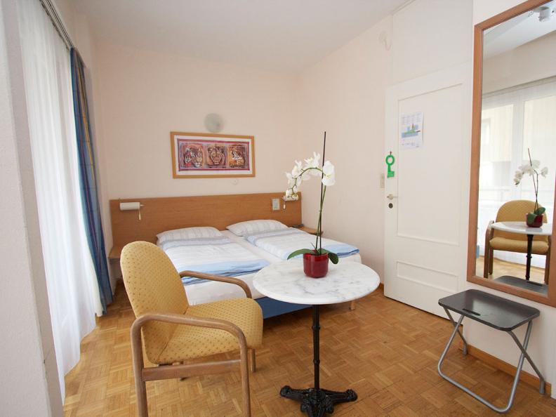 Small hotel with 21 bright rooms. Quietly located at only 500 mts to the lake and 15 mins walk to the centre.The hotel is managed by Sara and Nicolas since 2017. Important information. Limited parking at CHF 15.– a day and needs reservation. Free wifi. Breakfast buffet from 7:30 until 10:00 am earlier on demand possible. Coffe and te for free in the lobby. Check in until 14:00 after self check-in. Check out until 11 am. Animals not admitted. Lift on request.