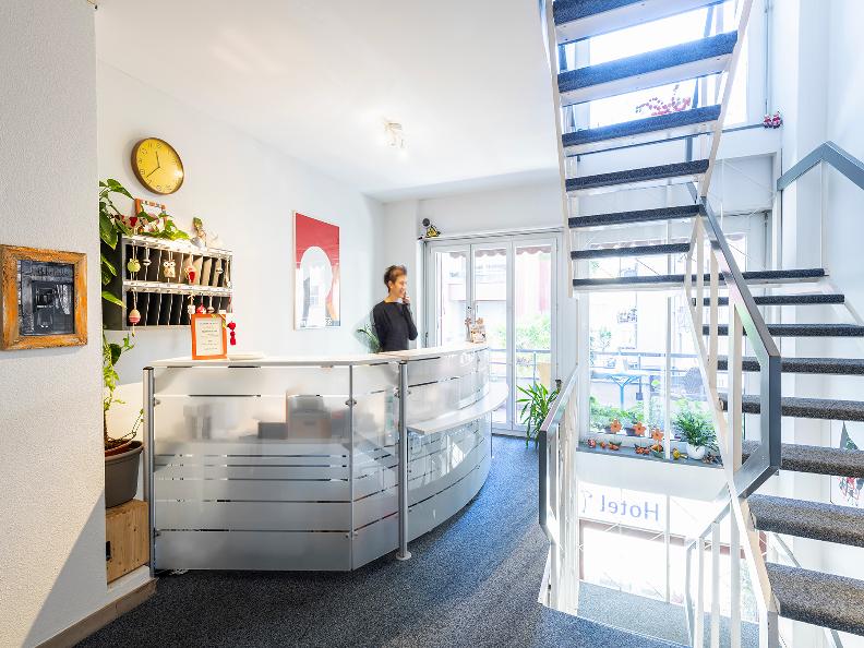 Small hotel with 21 bright rooms. Quietly located at only 500 mts to the lake and 15 mins walk to the centre.The hotel is managed by Sara and Nicolas since 2017. Important information. Limited parking at CHF 15.– a day and needs reservation. Free wifi. Breakfast buffet from 7:30 until 10:00 am earlier on demand possible. Coffe and te for free in the lobby. Check in until 14:00 after self check-in. Check out until 11 am. Animals not admitted. Lift on request.