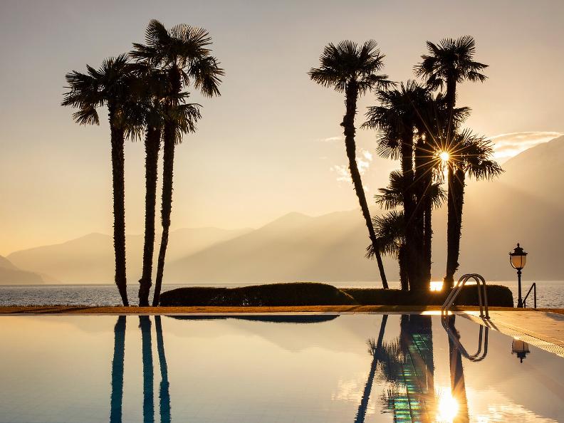 Directly on the shores of Lake Maggiore, the Hotel Eden Roc attracts visitors with its 10,000 m2 Mediterranean Garden of Eden and palm tree-fringed shoreline.