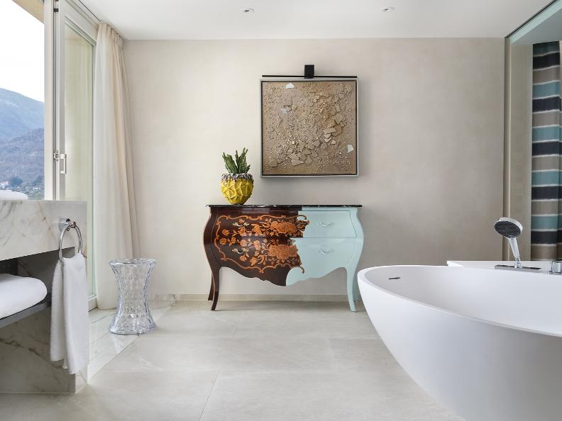 Ninety-five rooms and suites with plenty of natural light in the distinctive and colourful décor of Ticino interior designer Carlo Rampazzi offer a sense of well-being with Mediterranean flair.