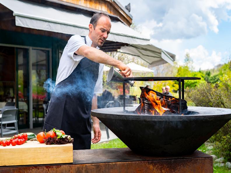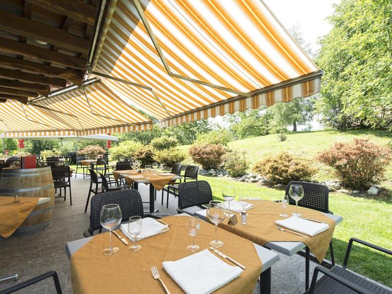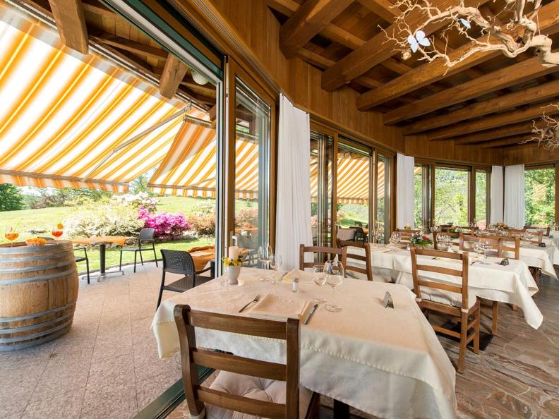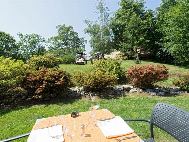 The cuisine is typical and local, using genuine and seasonal products, a cafeteria bar, aperitifs, pizzeria with a wood-burning oven and grill. It offers a rich breakfast buffet prepared with local products and has a terrace with a park of 2,000 square meters that can be enjoyed in fine weather.