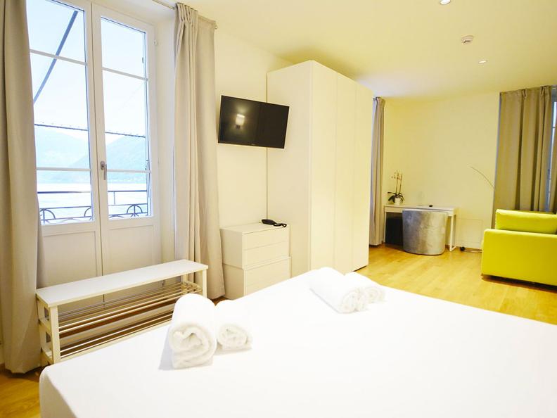 Comfortable and spacious rooms with terrace or balcony overlooking the lake. The Junior Suites have a double bed and a sofa bed: they can accommodate up to 3 adults or 2 adults and 2 children.